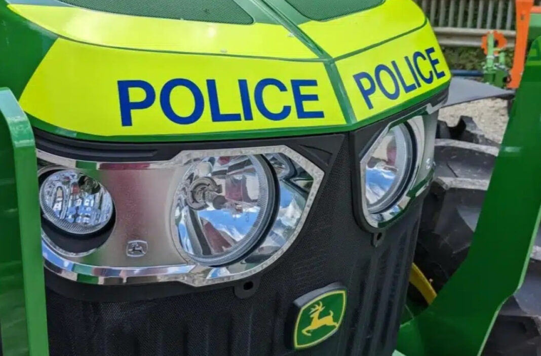 Ένα τρακτέρ John Deere 6110M, διακοσμημένο με αυτοκόλλητα της αστυνομίας, θα χρησιμοποιηθεί ως ασυνήθιστο περιπολικό στις επαρχίες Devon και Cornwall στη νοτιοδυτική Αγγλία.