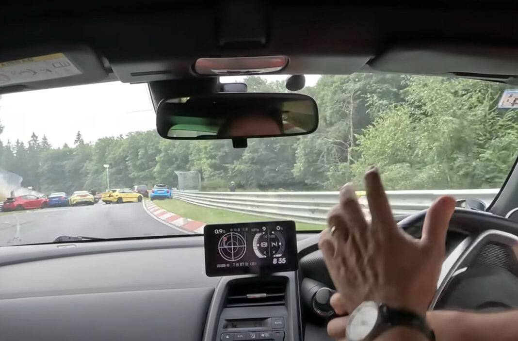 Χαρακτηριστικό βίντεο από οδηγό Honda S660 που κατέγραψε το συμβάν, δείχνει την απίστευτη στιγμή της προσέγγισής του στη στροφή χωρίς καμία προειδοποίηση. Εμπρός του, αυτοκίνητα -ανάμεσά τους μια Porsche, μια Toyota και αρκετές BMW- είναι διαλυμένα και σταματημένα επάνω στην αγωνιστική γραμμή. Με την ταχύτητα ήδη υψηλή και τον ορίζοντα μπλοκαρισμένο, δεν υπάρχει περιθώριο αντίδρασης.