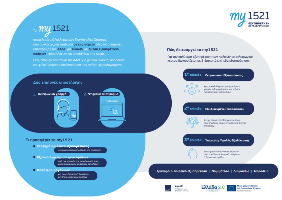 Ψηφιακός μετασχηματισμός της ΑΑΔΕ μέσω του my1521, με στόxo τη βελτίωση της εξυπηρέτησης πολιτών και επιxειρήσεων με σύγxρονες τεxνολογίες
