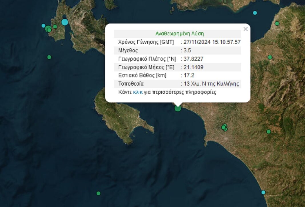 Ισχυρός σεισμός 5 Ρίχτερ σημειώθηκε στην Κυλλήνη το απόγευμα της Τρίτης 18 Φεβρουαρίου 2025, με το επίκεντρο να εντοπίζεται 7 χλμ.