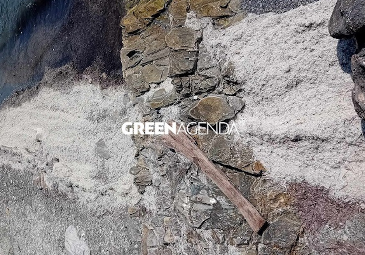 Η αποσυντεθειμένη οργανική μάζα που κατέληξε τις τελευταίες ημέρες στον Κόλπο της Κριθαροπούλας έχει δημιουργήσει ένα πυκνό στρώμα αγκαθιών που καθιστά το περπάτημα χωρίς παπούτσια, αδύνατο, σύμφωνα με το greenagenda.