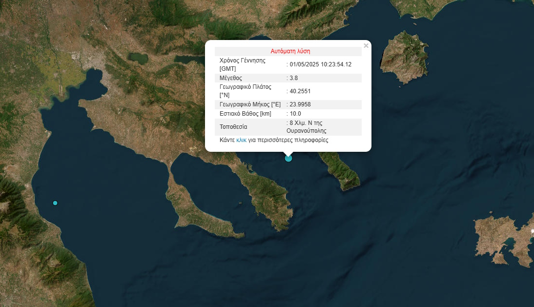 Σεισμός στο Άγιο Όρος: 3,8 Ρίχτερ κοντά στην Ουρανούπολη