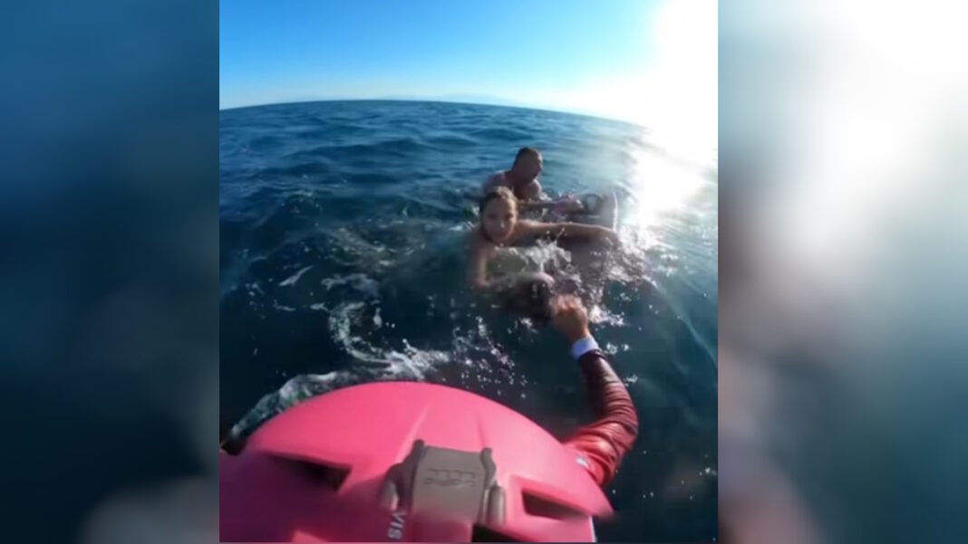 Στο συγκλονιστικό βίντεο που βγήκε στο φως της δημοσιότητας καταγράφεται όχι μόνο η στιγμή της διάσωσης των 2 λουόμενων αλλά και αμέτρητα συναισθήματα. Πατέρας και κόρη ενώ βρίσκονταν σε απόγνωση, βλέποντας τους αθλητές ξεκίνησαν να νιώθουν ανακούφιση.
