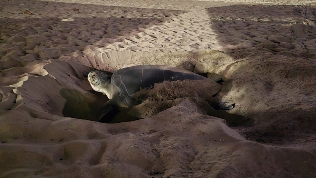 Σε βίντεο που ανέβηκε στα social media φαίνεται η στιγμή που η χελώνα σκάβει για να αφήσει τα αυγά της.