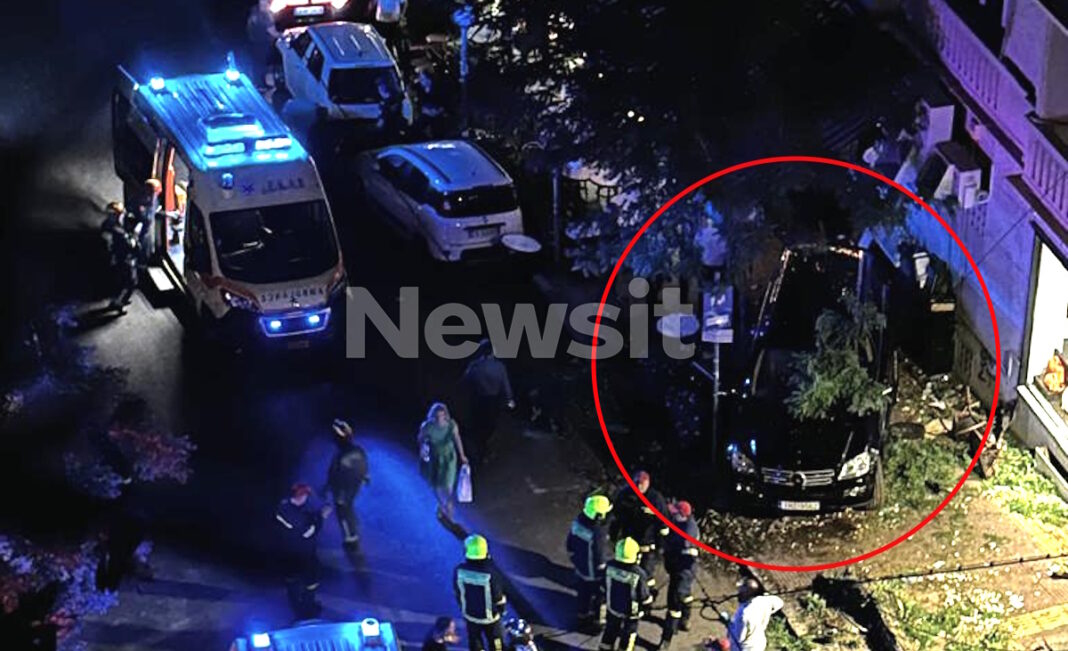 Το πρωτοφανές τροχαίο όταν αυτοκίνητο που φέρεται να λύθηκε το χειρόφρενο άρχισε να κινείται ανεξέλεγκτα με αποτέλεσμα να πέσει πάνω σε θαμώνες και να ξεριζώσει ένα τεράστιο δέντρο στο δρόμο του Κολωνάκιου.
