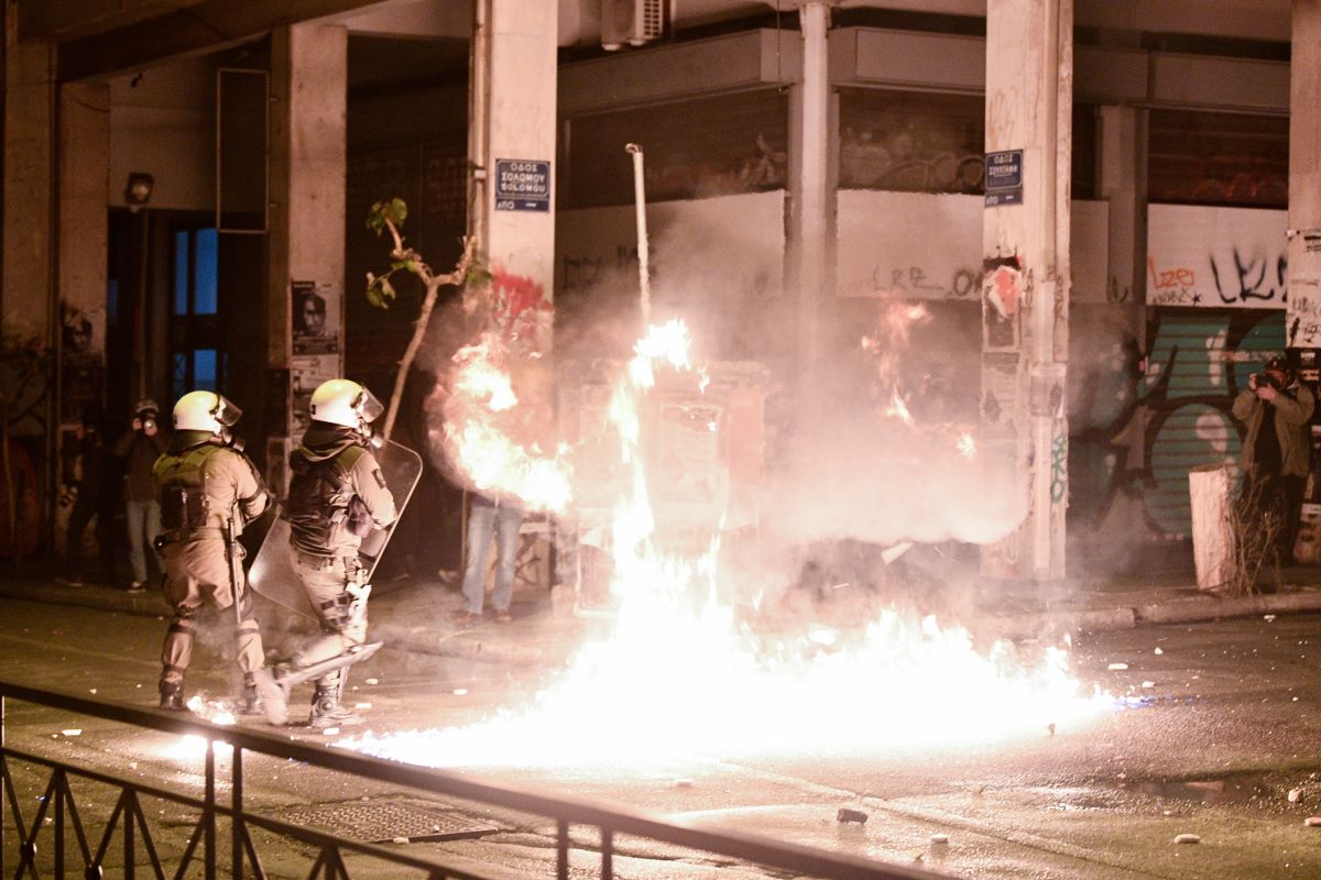 Οι άγνωστοι εκτόξευσαν τουλάχιστον 20 μολότοφ εναντίον των αστυνομικών στα Εξάρχεια.