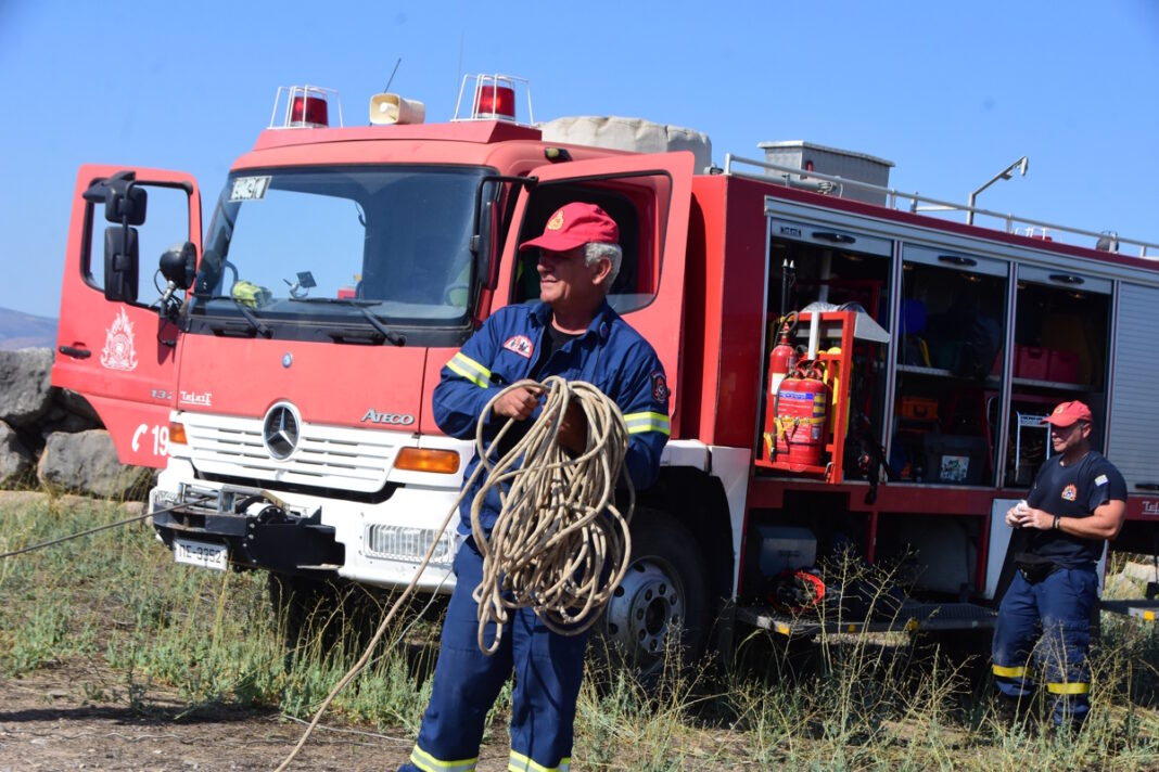 Στην επιχείρηση συμμετέχουν 15 πυροσβέστες από διάφορες μονάδες, που προσπαθούν να την προσεγγίσουν και να τη μεταφέρουν με ασφάλεια για να της παρασχεθούν οι πρώτες βοήθειες.