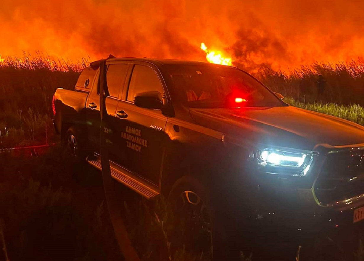 Στο σημείο που μαίνεται η φωτιά στο Ποτοκάκι στη Σάμο έχουν σπεύσει 39 πυροσβέστες με 13 οχήματα, η 14η ΕΜΟΔΕ και εθελοντές της ευρύτερης περιοχής, ενώ καίει καλαμιές.