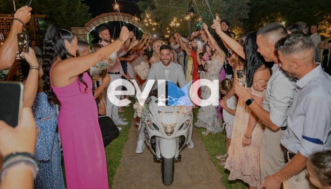 Μία είσοδο διαφορετική από όλες τις άλλες επέλεξε να κάνει ένα νεαρό ζευγάρι στην Εύβοια που, μετά τον γάμο του, κατέφθασε στη δεξίωση με μία μηχανή.