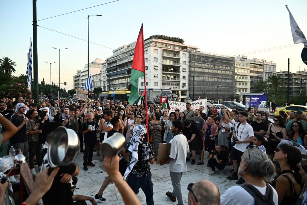 Στο Σύνταγμα πραγματοποιήθηκε συγκέντρωση διαμαρτυρίας με κατσαρόλες και τηγάνια, με το σύνθημα «Τροφή για την Παλαιστίνη», ως ένδειξη αλληλεγγύης προς τον παλαιστινιακό λαό που αντιμετωπίζει σοβαρό λιμό.