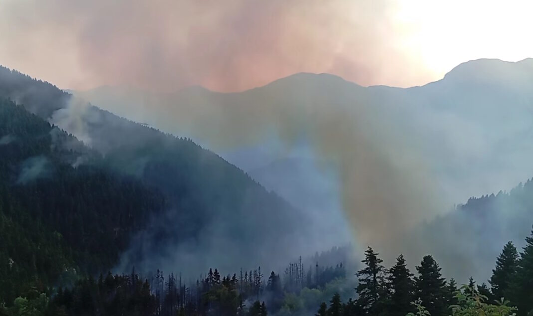 Παρά τις δυσκολίες στην τροφοδοσία με νερό και την πρόσβαση στην περιοχή, οι επίγειες δυνάμεις κατάφεραν να περιορίσουν τα μέτωπα της φωτιάς, η οποία έχει κάψει περίπου 100 στρέμματα ελατοδάσους χωρίς να απειλεί κατοικημένες περιοχές.