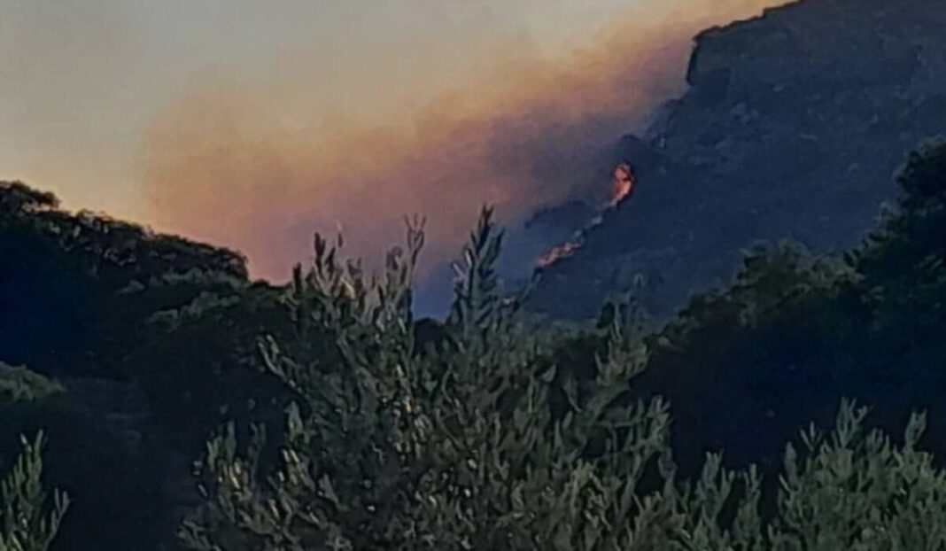 Η φωτιά, ενισχυμένη από ισχυρούς ανέμους που φτάνουν τα 10 μποφόρ, έχει ήδη καταστρέψει δύο σπίτια στο χωριό Ασφενδήλες και συνεχίζει να εξαπλώνεται με επικίνδυνο ρυθμό προς την Παλαιόχωρα.