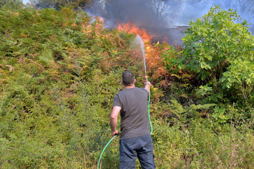 Η πυρκαγιά, σύμφωνα με την Πυροσβεστική σιγοκαίει βλάστηση στην κορυφογραμμή των Λιβερών.
