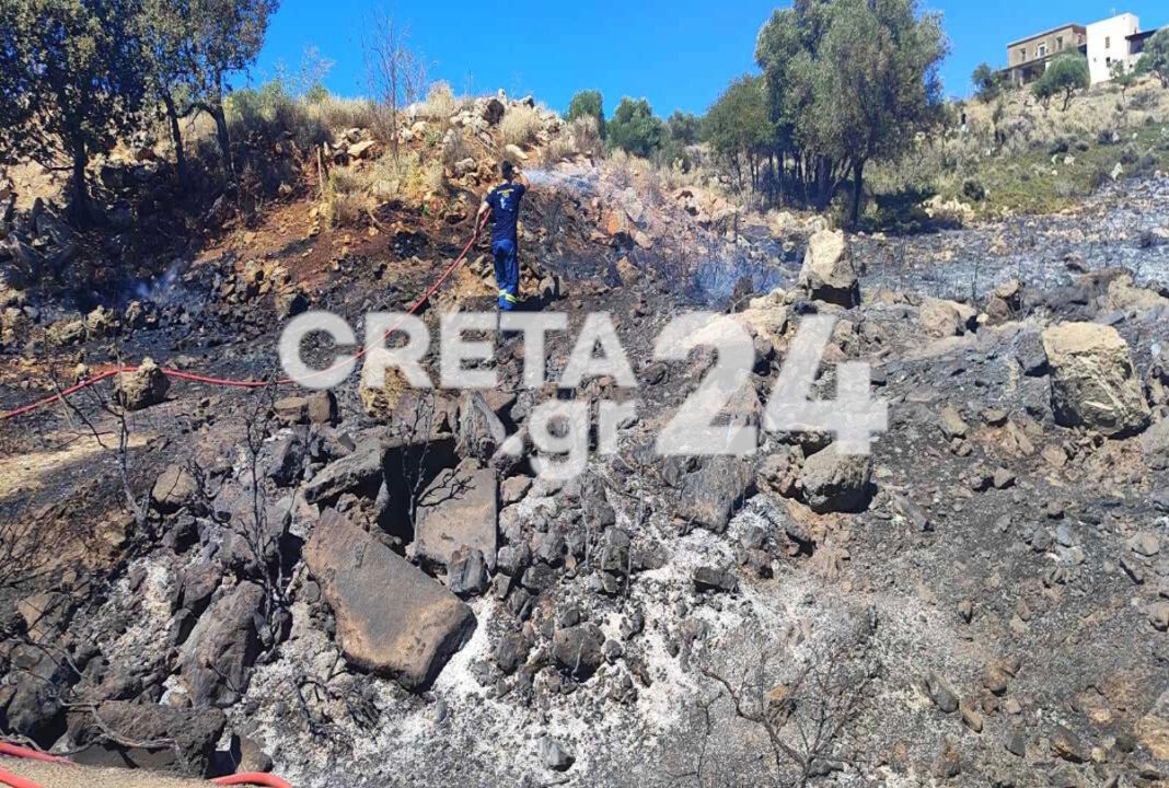 Μεγάλη πυρκαγιά στα Χανιά με 30 πυροσβέστες και δύο ελικόπτερα σε επιχείρηση κατάσβεσης στα Μεγάλα Χωράφια