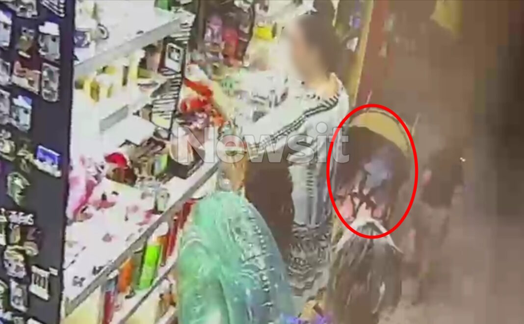 Το βίντεο, που τραβήχτηκε το βράδυ πριν το τραγικό συμβάν, δείχνει τη γυναίκα να αγοράζει προϊόντα, ενώ το παιδάκι στο καροτσάκι παραμένει ακίνητο.