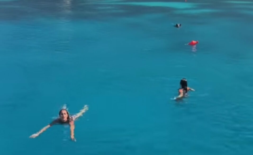 Σε βίντεο που έχει ανέβει στο TikTok φαίνονται οι δύο γυναίκες μέσα στη θάλασσα όταν ξαφνικά εμφανίστηκε ένα αγριογούρουνο να κολυμπάει και να κατευθύνεται προς εκείνες.