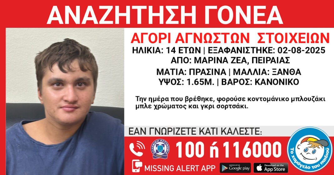 Αναζητούνται οι κηδεμόνες 14χρονου που εντοπίστηκε να περιφέρεται στη Μαρίνα Ζέας – Ανακοίνωση από το «Χαμόγελο του Παιδιού»