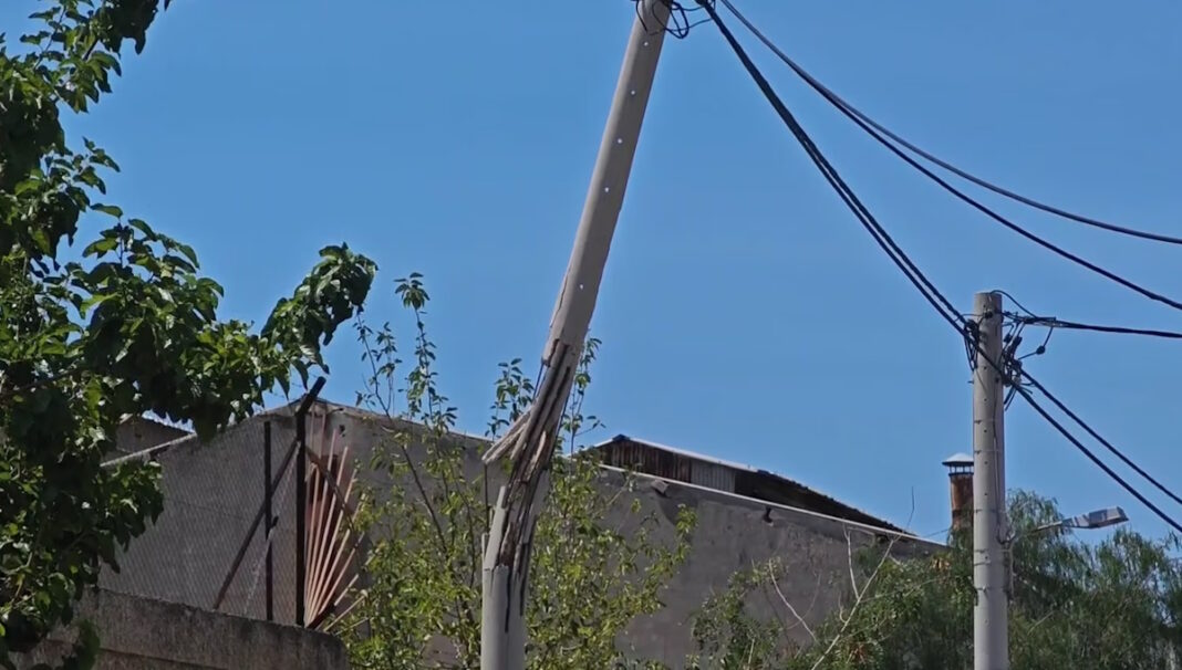 Εξαιτίας των ισχυρών ανέμων μια κολόνα ηλεκτροδότησης στον Υμηττό υπέστη σοβαρές ζημιές το πρωί της Πέμπτης (7.8.2025) και είναι έτοιμη να πέσει.