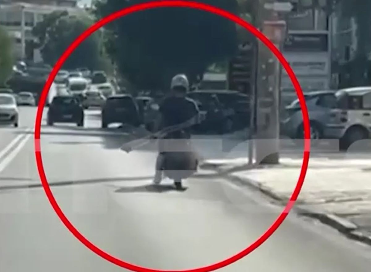 Το περιστατικό με τον οδηγό της μηχανής που κρατά τις πατερίτσες, καταγράφηκε νωρίς το μεσημέρι της Παρασκευή (20.09.2024) σε κεντρικό δρόμο στον Ταύρο.