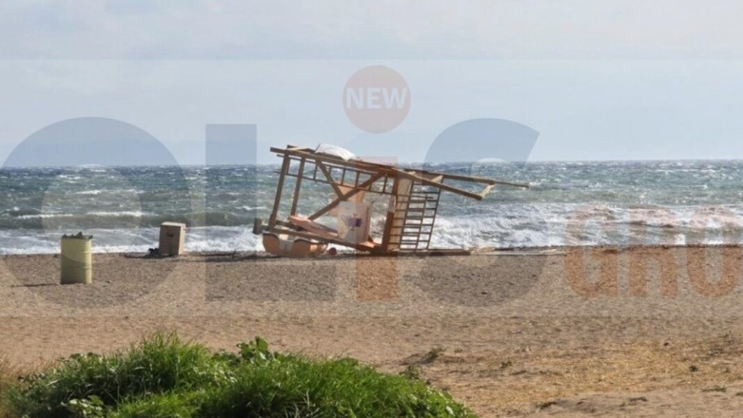 Ισχυροί άνεμοι κατέρριψαν τον ξύλινο πύργο ναυαγοσώστη στη Ραφήνα, προκαλώντας υλικές ζημιές χωρίς ανθρώπινα θύματα