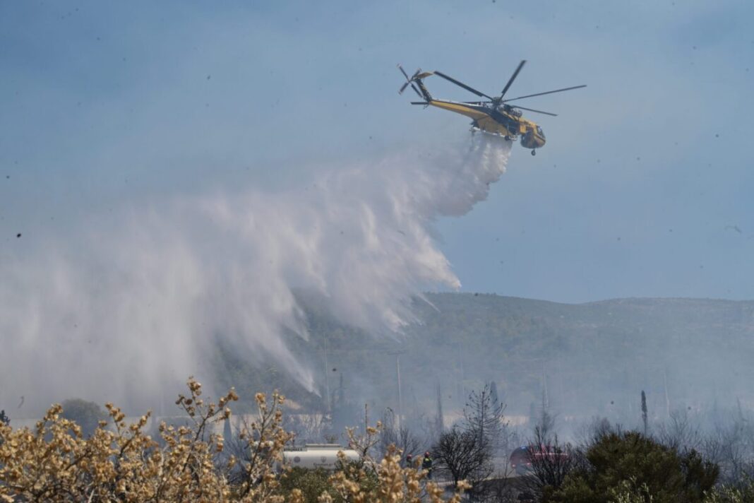 Για την κατάσβεσή της επιχειρούν 30 πυροσβέστες, 1 ομάδα πεζοπόρου, 8 οχήματα και 2 ελικόπτερα, με συνδρομή υδροφόρων ΟΤΑ.
