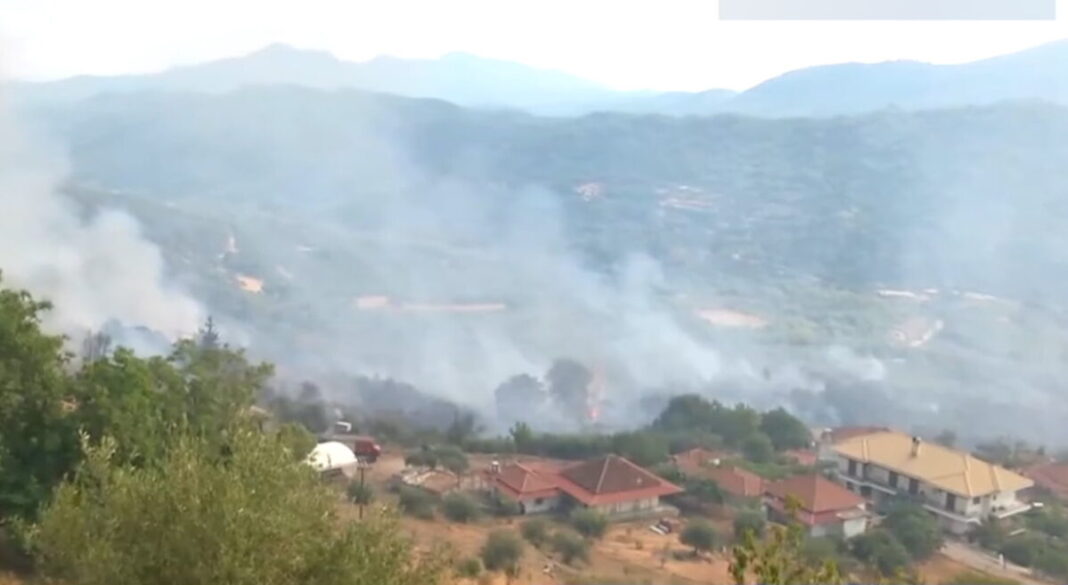 Δύο σπίτια έχουν ήδη τυλιχθεί στις φλόγες, ενώ αυτήν τη στιγμή οι πυροσβέστες δίνουν μάχη για να μην καούν άλλα σπίτια, από τις αυλές των οποίων έχει περάσει η πύρινη λαίλαπα.