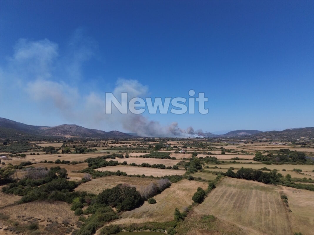 Η φωτιά στην περιοχή Πάλαιρος στην Αιτωλοακαρνανία αποτεφρώνει αγροτοδασική έκταση.