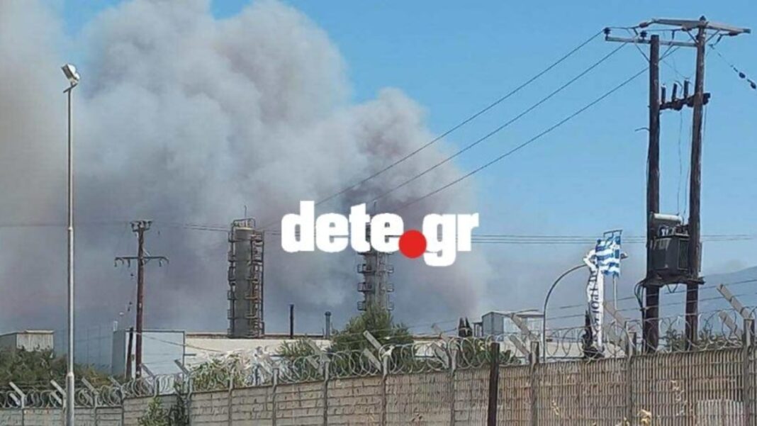 Οι φλόγες και οι καπνοί από την φωτιά είναι ορατοί από μεγάλη απόσταση, αναφέρει το dete.gr.