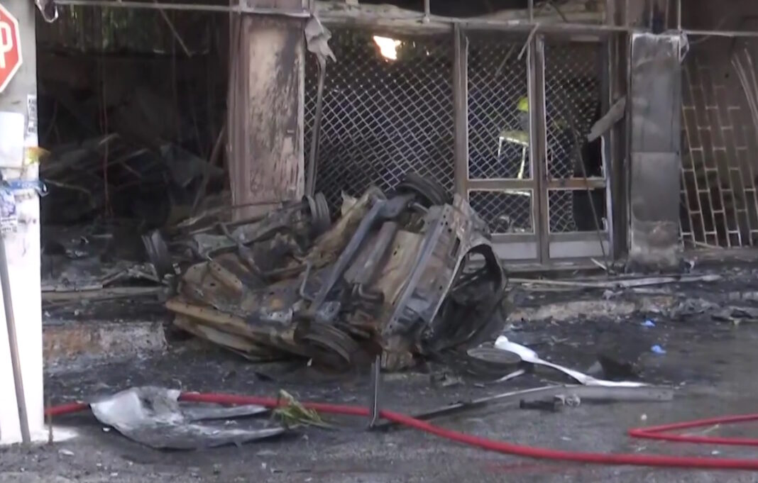 Από τη φωτιά κάηκε ολοσχερώς το όχημα και το κατάστημα, ενώ λίγο αργότερα εντόπισαν νεκρό τον οδηγό.