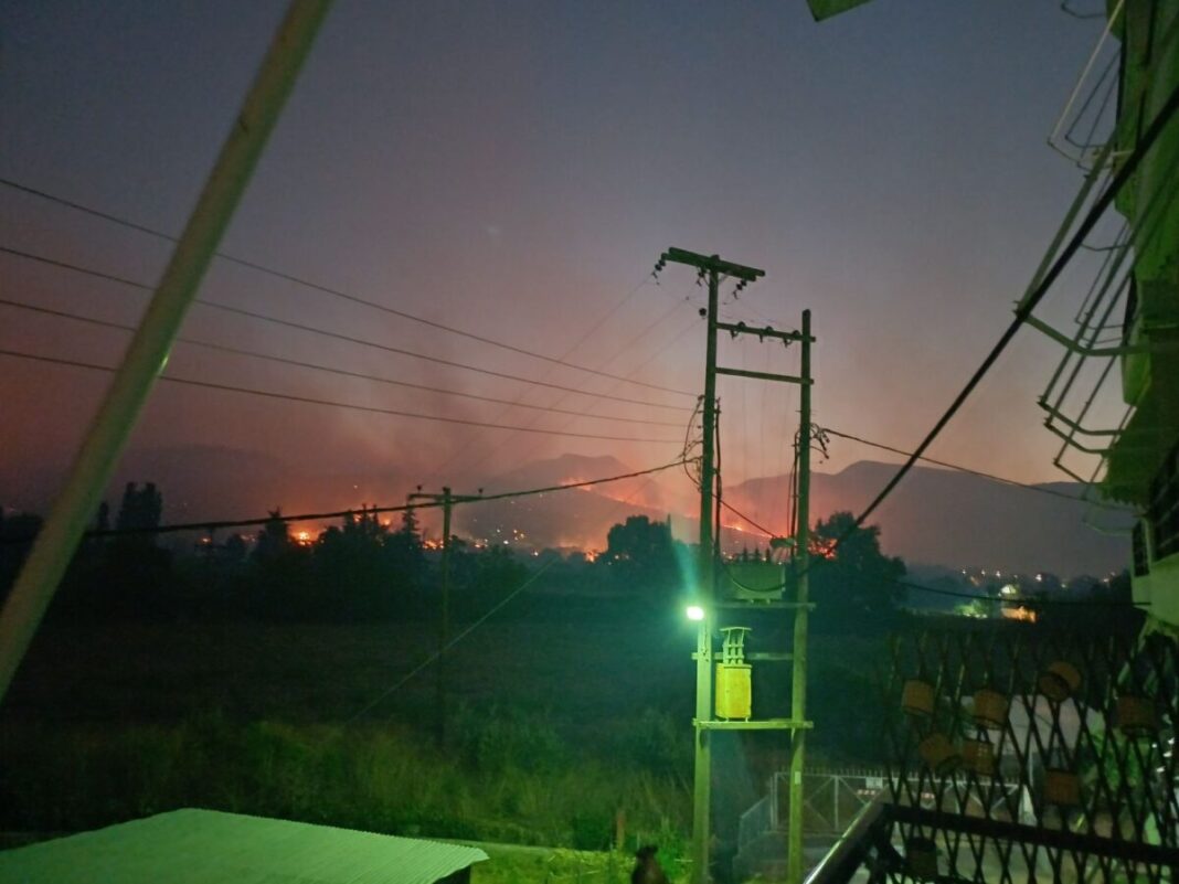 Το βράδυ εστάλησαν απανωτά μηνύματα του 112, καλώντας τους κατοίκους να απομακρυνθούν από τις περιοχές που πλησίαζε η φωτιά.