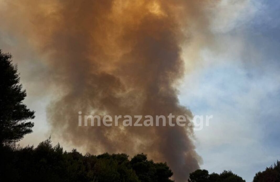 Το μεσημέρι της Τετάρτης (13/8/25) «θέριεψε» το μέτωπο της φωτιάς που εντοπίζεται στην δυτική πλευρά του Κοιλιωμένου Ζακύνθου με κατεύθυνση προς Αγαλά.