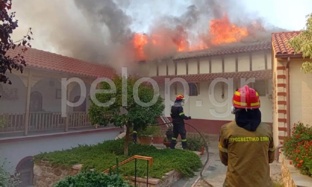 Παράλληλα καίγεται η Ιερά Μονή Αγίου Νικολάου στο Μπάλα Πατρών! Η καταστροφική πυρκαγιά καίει τη σκεπή του γυναικείου μοναστηριού με τους πυροσβέστες, τις μοναχές και εθελοντές να δίνουν τιτάνια μάχη για να αποσοβήσουν τα χειρότερα.