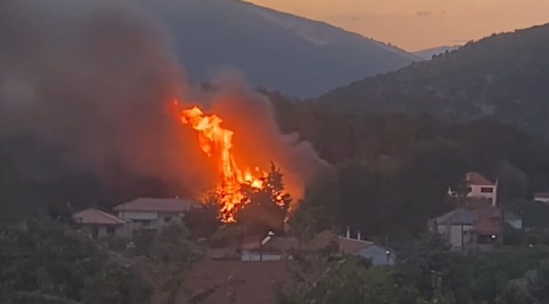 Οι κάτοικοι του χωριού βγήκαν στους δρόμους, στη θέα της φωτιάς.