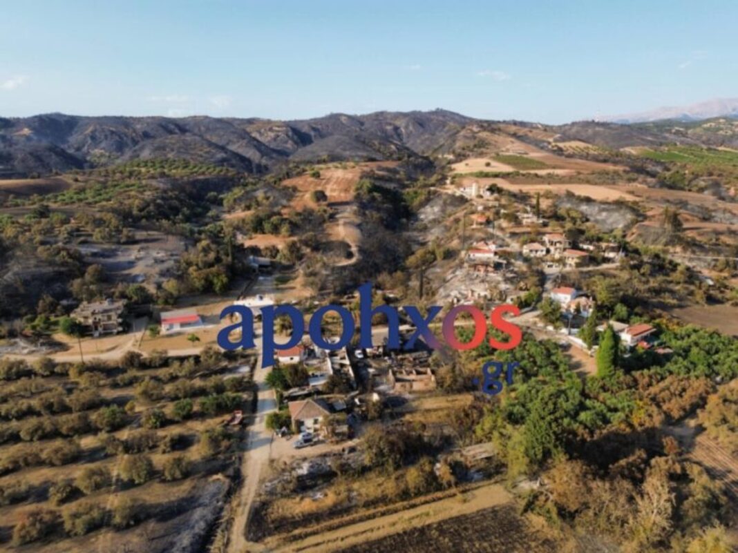 Ολοκληρωτική καταστροφή στα Μοιραίικα Αχαΐας με περισσότερα από 15 σπίτια και εκτεταμένες γεωργικές περιουσίες να γίνονται στάχτη από τις πυρκαγιές