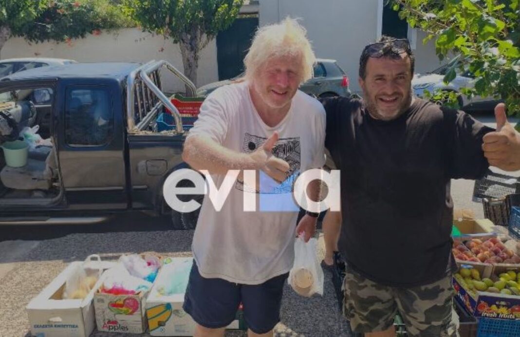 Ο Μπόρις Τζόνσον απολαμβάνει τις διακοπές του στην Εύβοια, στηρίζοντας την τοπική αγορά και ποζάροντας με πλανόδιο μανάβη στην Κάρυστο
