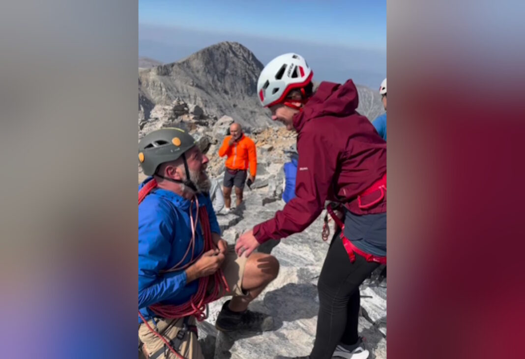 Η πιο ρομαντική πρόταση γάμου πραγματοποιήθηκε στην κορυφή του Ολύμπου – Δείτε το βίντεο με το «ναι» της μέλλουσας νύφης