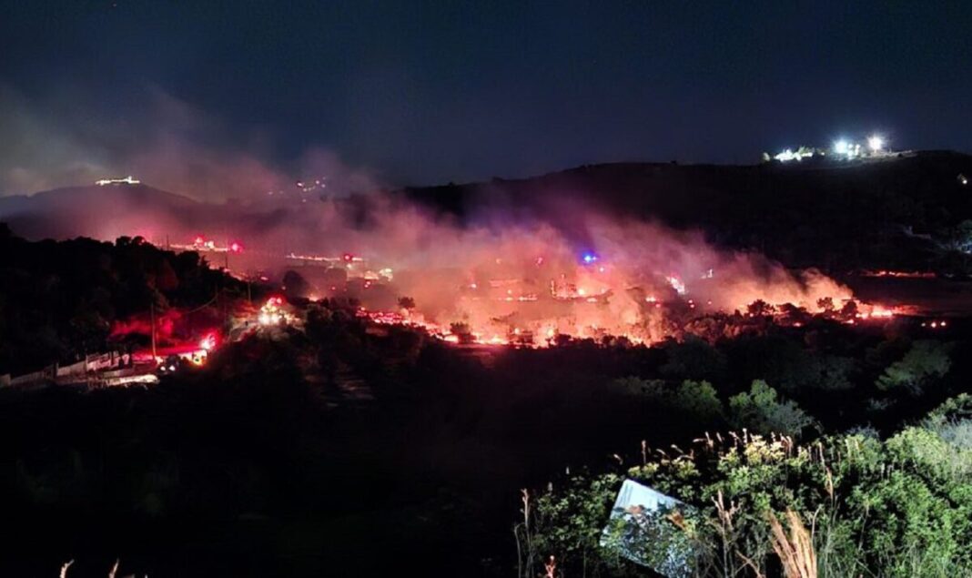 Λίγο πριν τις 22.00 εστάλη μήνυμα στους πολίτες στην περιοχή ενημερώνοντας τους για τη φωτιά και καλώντας τους να παραμείνουν σε ετοιμότητα.