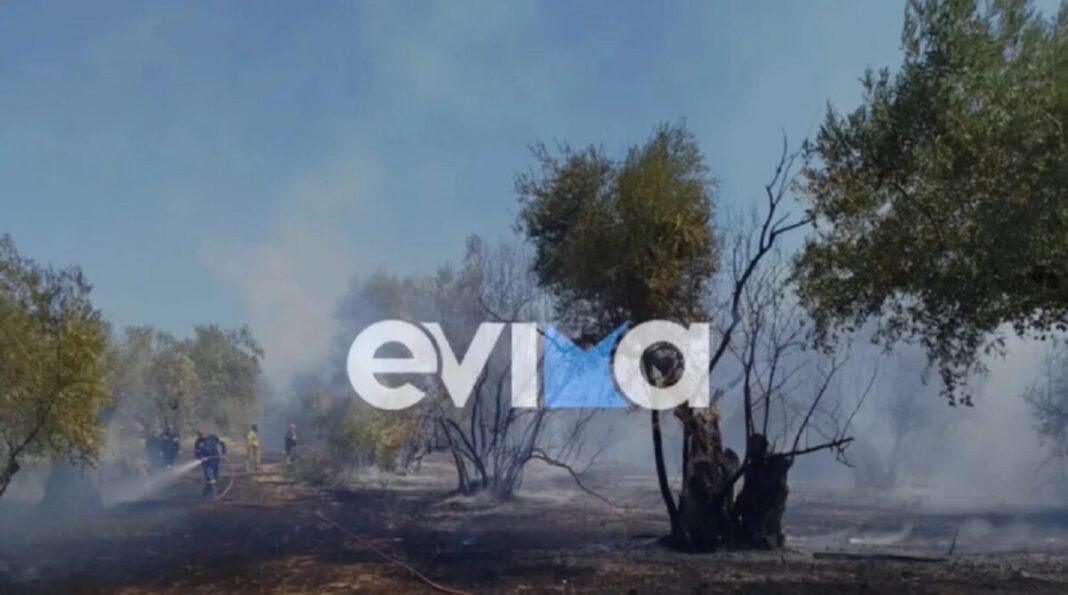 Η φωτιά στη Βόρεια Εύβοια, σύμφωνα με τοπικές πηγές, καίει ελαιόδεντρα και χαμηλή βλάστηση, με την κινητοποίηση της πυροσβεστικής να είναι μεγάλη.