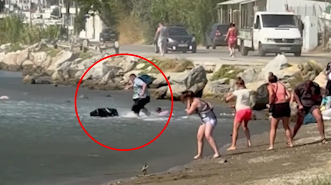 Το περιστατικό καταγράφηκε σε βίντεο που κυκλοφορεί ευρέως στο διαδίκτυο, δείχνοντας έναν τουρίστα να βουτάει στη θάλασσα για να ανακτήσει τη βαλίτσα του.