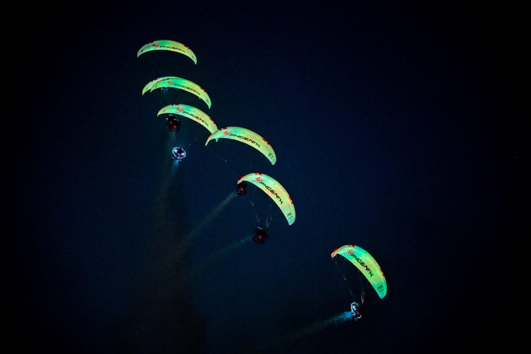 Σημείο αναφοράς στάθηκε το νυχτερινό σόου των Πολωνών paramotors Phoenix, η οποία «έκλεψαν» τις εντυπώσεις και έδωσαν ζωή στον ουρανό της Αθήνας με εκθαμβωτικούς ελιγμούς, γεμάτους χρώματα και εικόνα.
