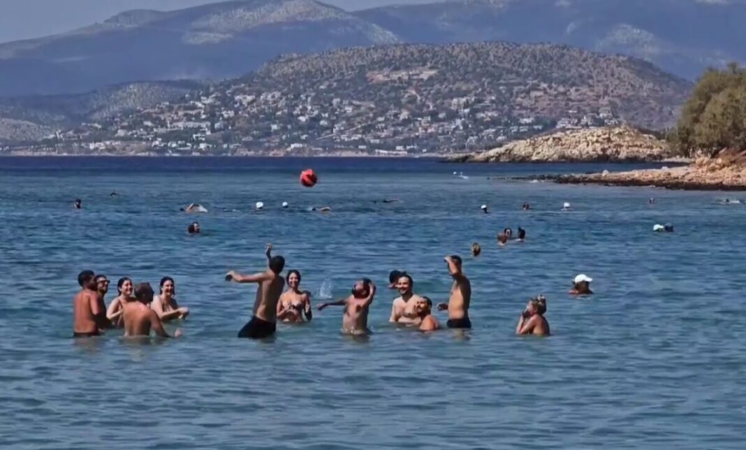 Οι Αθηναίοι εκμεταλλεύονται τις ασυνήθιστα υψηλές θερμοκρασίες για την εποχή, που θυμίζουν Αύγουστο, για να απολαύσουν τα «τελευταία μπάνια» στις παραλίες της Αττικής.