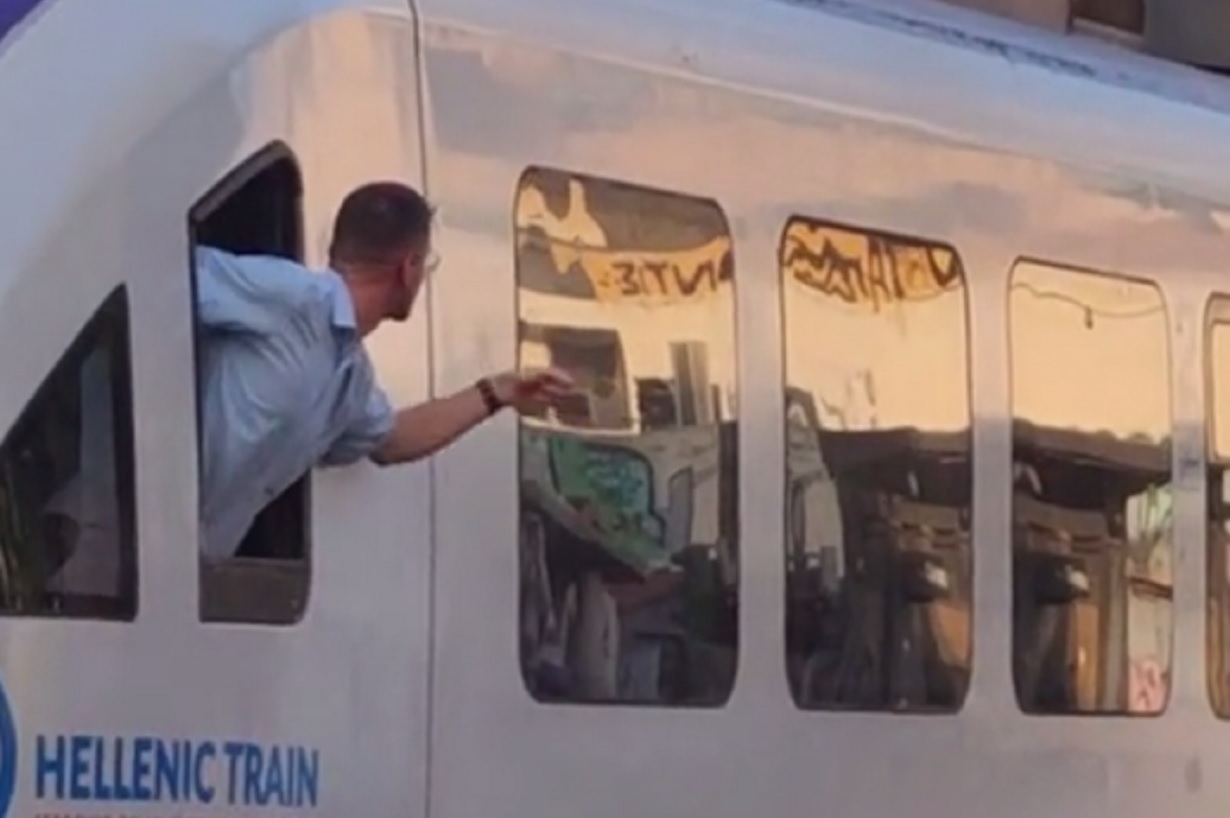 Μάλιστα ο μηχανοδηγός φαίνεται να λέει εκνευρισμένος στον ελεγκτή «περνάει το τρένο ρε!» και να τονίζει ότι θα του κάνει αναφορά για το εν λόγω περιστατικό.