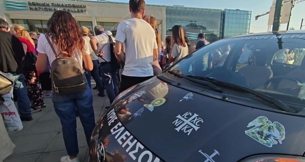 Το κάλεσμα πραγματοποιήθηκε από τον «Ελληνικό Παλμό», το κίνημα του πρώην βουλευτή, μετά την αποχώρησή του από τη «Νίκη». Οι συγκεντρωμένοι διαμαρτύρονται για την επιστροφή των έργων που είχαν βανδαλιστεί και φωνάζουν συνθήματα όπως «έξω τα εκτρώματα απ’ την Πινακοθήκη», «Ελλάδα σημαίνει ορθοδοξία», «έξω οι μασόνοι από την Εκκλησία», ενώ στο «στόχαστρό» τους βρέθηκε η ΛΟΑΤΚΙ κοινότητα, τα εμβόλια, οι μετανάστες, ο Αρχιεπίσκοπος Ιερώνυμος, από τον οποίο ζητούσαν να δώσει το «παρών», αλλά και η κυβέρνηση.