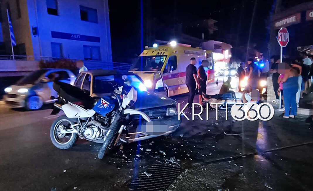 Σοβαρό τροχαίο ατύχημα σημειώθηκε στα Χανιά το βράδυ της Δευτέρας, όταν αυτοκίνητο συγκρούστηκε με μοτοσικλέτα στη λεωφόρο Καζαντζάκη στο Βαμβακόπουλο.