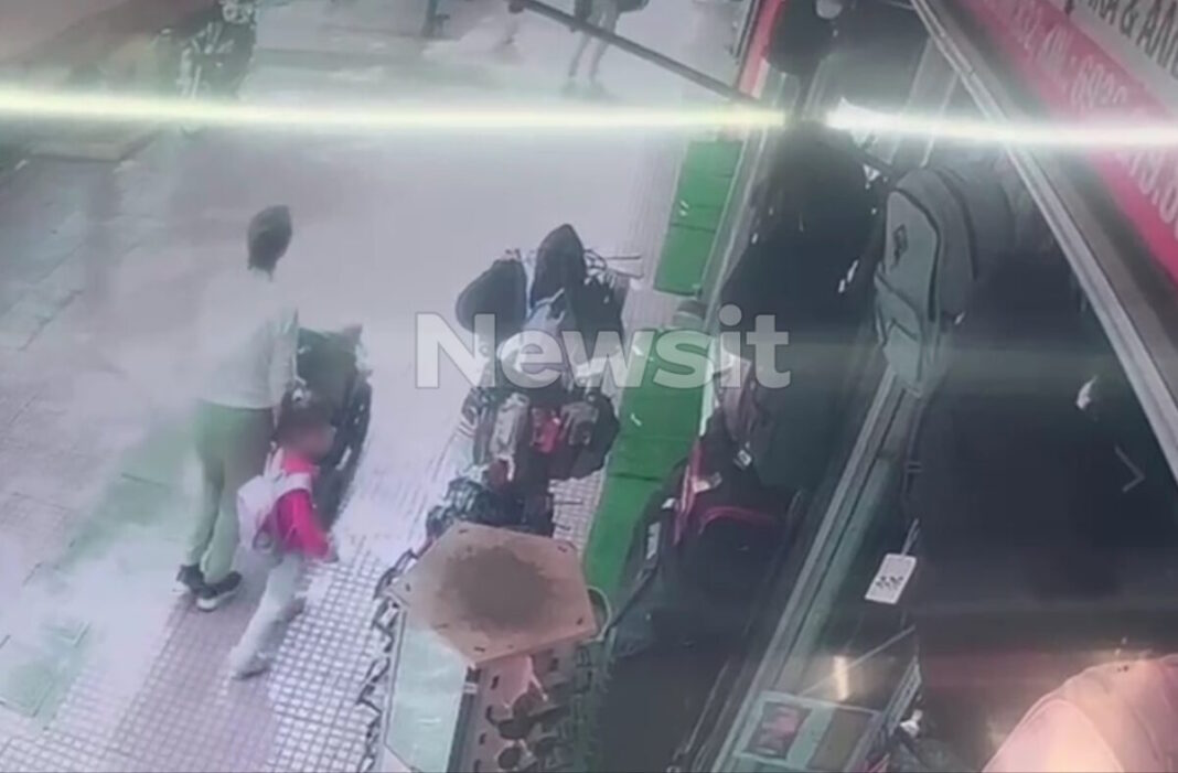 Όπως θα δείτε, το κοριτσάκι που φοράει κόκκινη μπλούζα κι έχει στην πλάτη του μια σχολική τσάντα, θα προσπεράσει την γυναίκα με το καροτσάκι. Τότε αυτή θα τη σταματήσει και θα τη ρωτήσει εάν είναι μόνη της και που πηγαίνει. Όταν θα λάβει την απάντηση ότι δεν συνοδεύεται από κάποιον, τότε θα σταματήσει την 4χρονη και μαζί με υπαλλήλους μιας καφετέριας θα ειδοποιήσουν την αστυνομία.