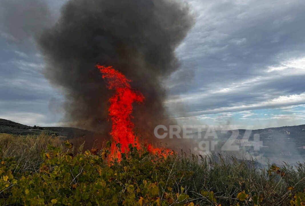 Φωτιά ξέσπασε το μεσημέρι της Πέμπτης, (2/10/2025), στις Μαλάδες Ηρακλείου.