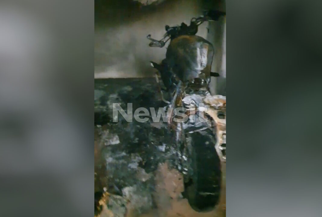 Στο βίντεο από παρουσιάζει το newsit.gr είναι λίγα λεπτά από την κατάσβεση της μηχανής και φαίνεται το εσωτερικό της πολυκατοικίας πως αλλοιώθηκε από τις φλόγες αλλά και την μοτοσυκλέτα που έχει καεί ολοσχερώς.