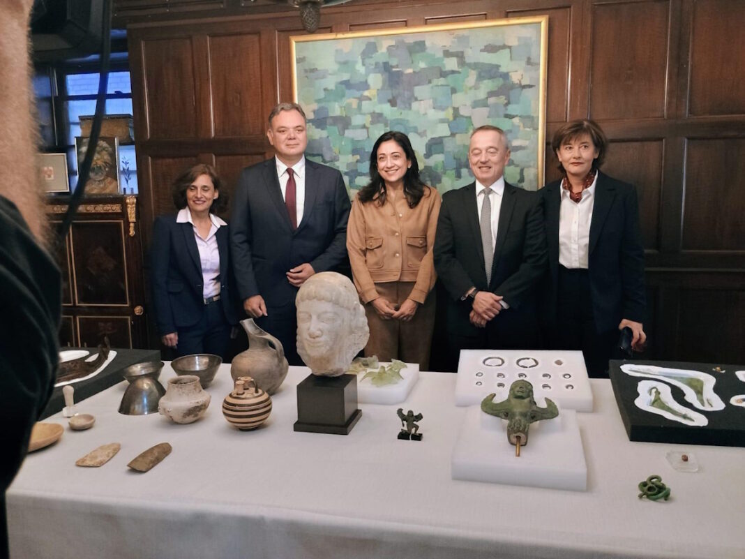 Η Υπουργός Πολιτισμού, Λίνα Μενδώνη, τόνισε τη σημασία του επαναπατρισμού και την ανάγκη για συνεχή συνεργασία κατά της παράνομης διακίνησης πολιτιστικών αγαθών.