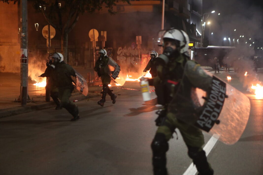 Η ένταση ξεκίνησε γύρω στη μία μετά τα μεσάνυχτα του Σαββάτου στη Χαριλάου Τρικούπη με τους άνδρες των ΜΑΤ να προχωρούν συνολικά σε 14 προσαγωγές.