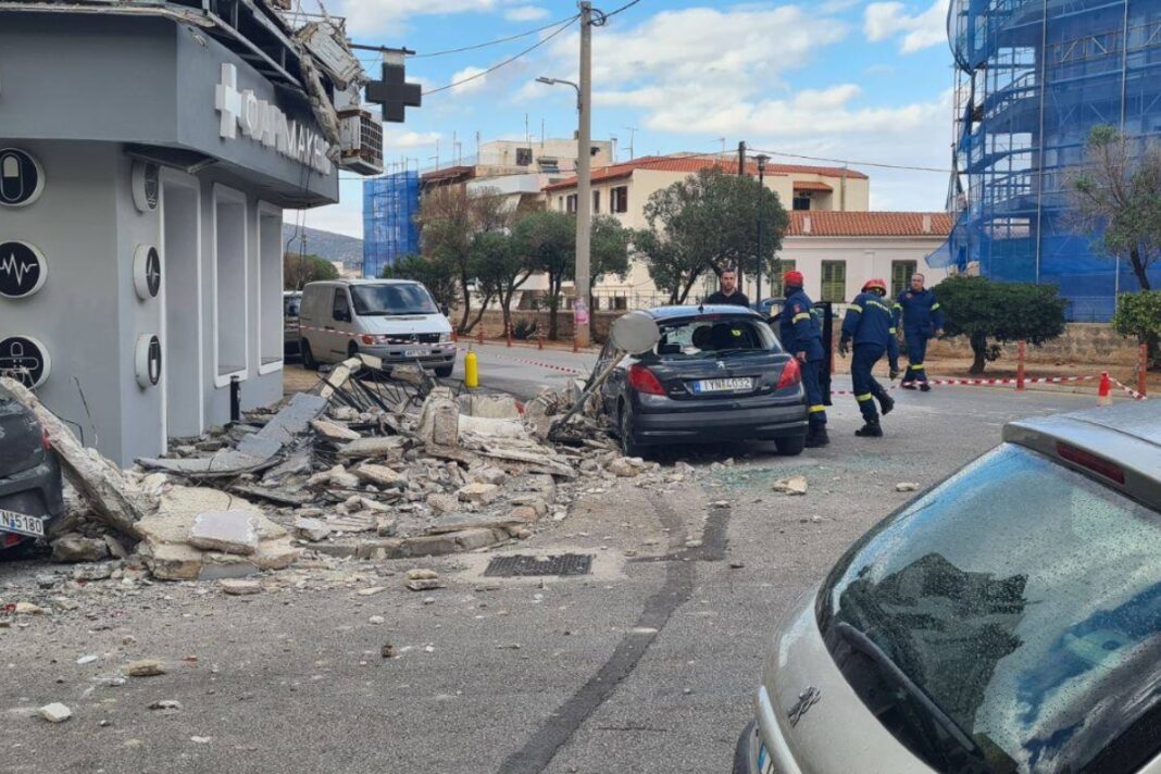 Λαύριο: Κατάρρευση μπαλκονιού κτιρίου – Φθορές σε οχήματα